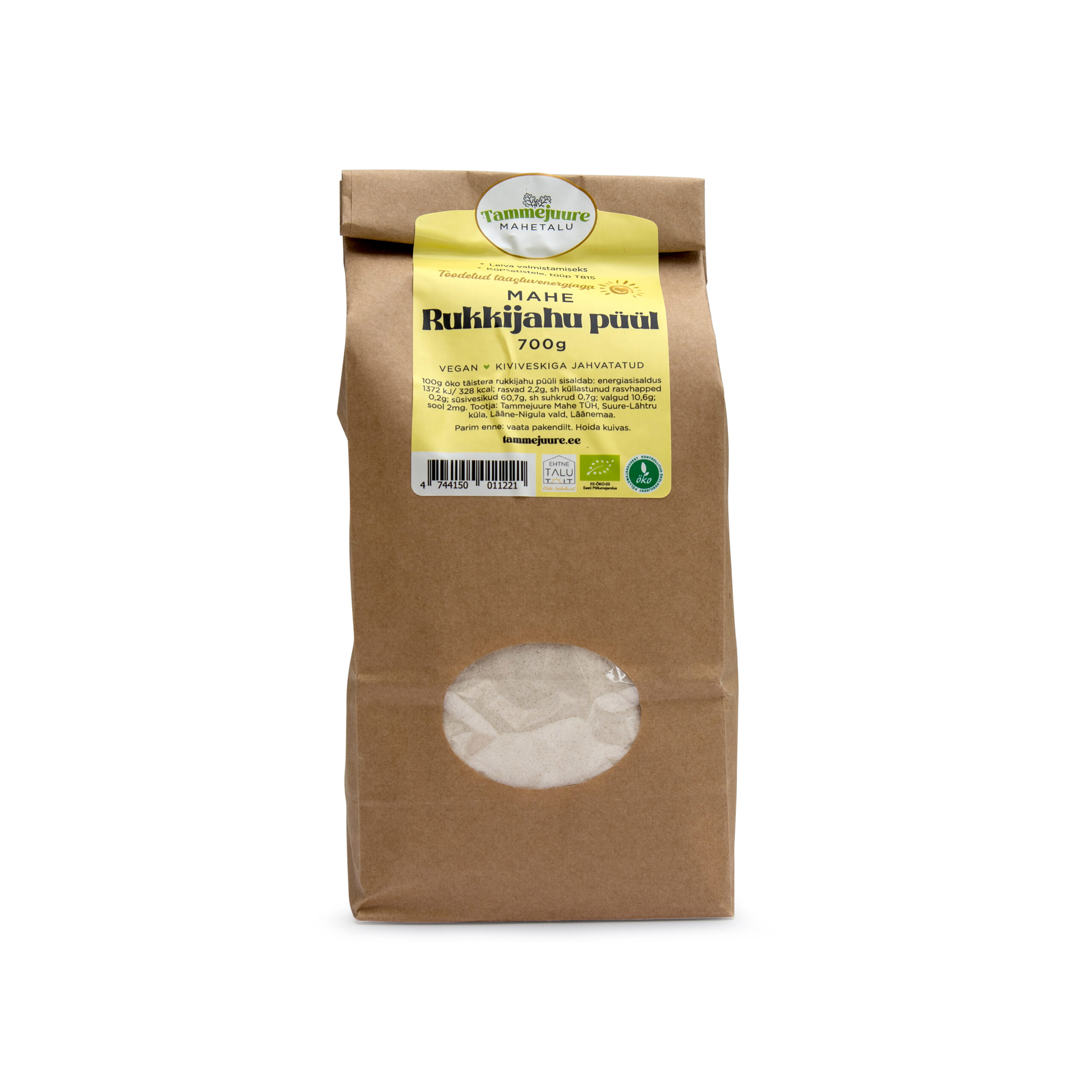 - Kreemja värviga pehme tekstuuriga peen rukkijahu, kuumtöötlemata